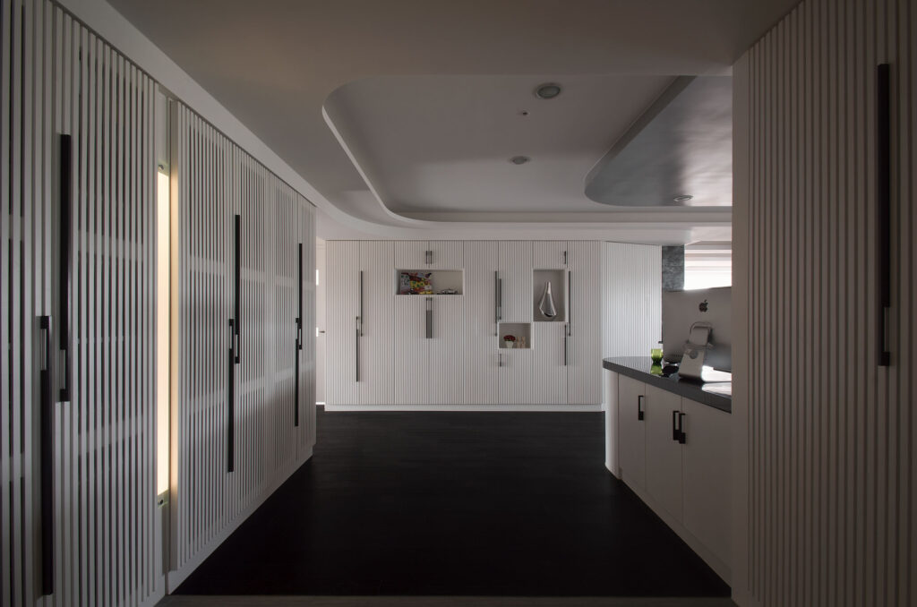 羅夫之家 – 寬舍設計 羅夫平日最大的興趣是衝浪,哪裡有浪就往哪裡走,而羅夫太太是甜食的愛好者。這麼有情趣的兩個人,我們用浪花銀色為主體搭配開放式的法式廚房,希望他們能夠與空間有足夠的對談,家人感情能因為空間得到彼此的交流。